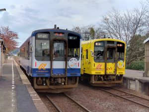 のと鉄道(乗車・13:40/15:00)== 能登食祭市場(買い物・15:30/16:00)== 中部自動車商会(17:30着)