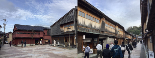 対象的に賑やかで華やか、伝統工芸のお店が並ぶひがし茶屋街
