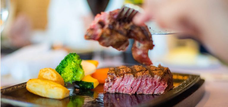 ①昼食は特上能登牛ステーキ(8,800円相当のメニュー)