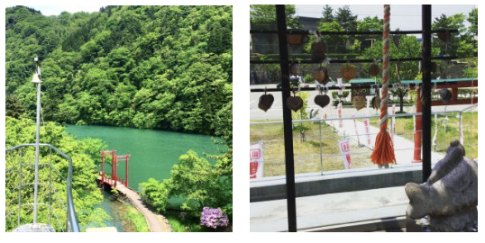 縁結び・開運祈願のパワースポット。庄川では古くから鯉が身代わりとなって災いを受けてくれるといわれていて、毎年1月7日には奇祭「厄払い鯉の放流」を行っています。ゆるやかで雄大な庄川を見下ろす展望スポットは、足元が透け透けになっていてスリル満点です。雄大な庄川の流れを散策路でお楽しみください。