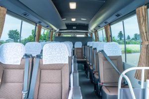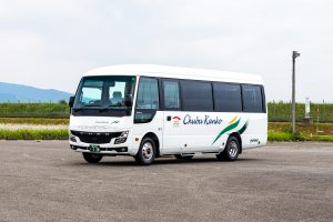 マイクロバス新車導入のお知らせ 2025.05.25 お知らせ 荷台付のマイクロバスを導入いたしました 2025年5月23日に新型のマイクロバスを導入いたしました。デザインには富山県の「寿司といえばとやま」のロゴと立山連峰をイメージした山脈を施しております。 荷物を積むことが出来る荷台・USB付。高級感のあるシートとシックな空間が特長のプレミアムグレードです。